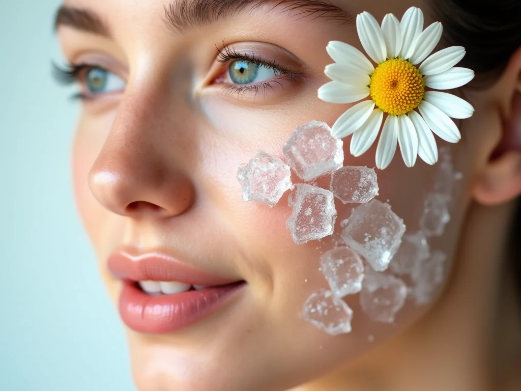 O poder duplo do gelo e da camomila para uma pele de pêssego