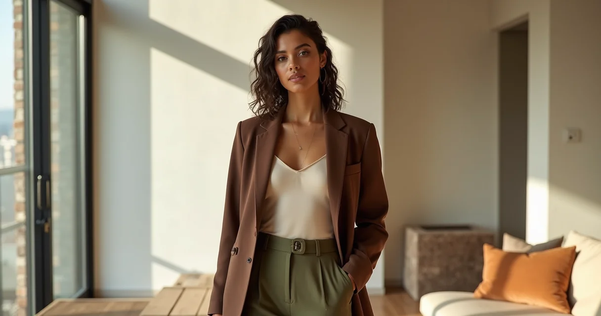 Monocromático Chique: Use diferentes tons de marrom no mesmo look. Uma calça marrom chocolate com uma blusa caramelo e um sapato nude cria profundidade e sofisticação. A ideia é que as cores se complementem, não que sejam idênticas.